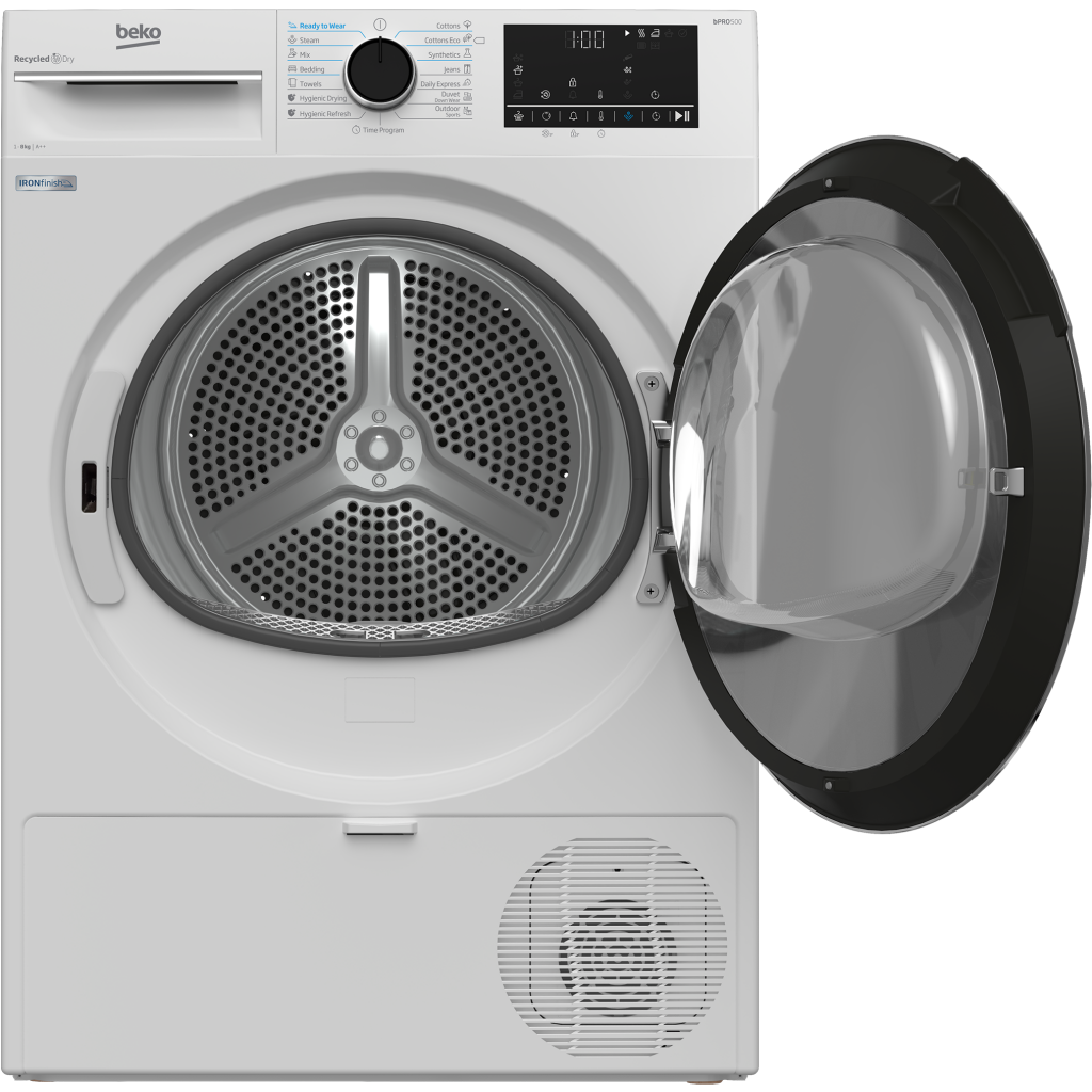 | Programi i Funkcije | Program 1 Pamuk Program 2 Eco program za sušenje pamuka Program 3 Sintetika Program 4 Program za farmerke Program 5 Ekspres super kratak program 14 min Program 6 Program za jorgane/jakne Program 7 Program za zimsku/sportsku odjeću Program 8 Programi sa tajmerom Program 9 Hygienic Refresh Program 10 Hygienic Drying Program 11 Program za peškire Program 12 Program za jorgane Program 13 Program za mješani veš Program 14 Steam Refresh Program 15 Ready to Wear (Shirts) |